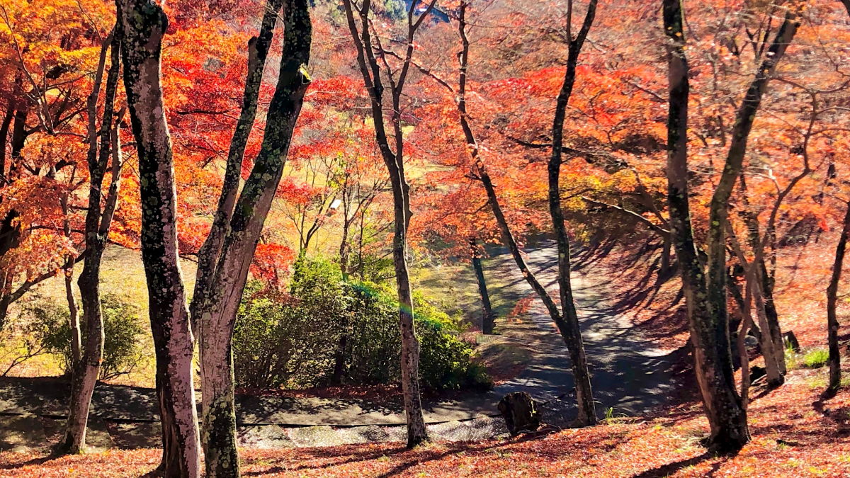 修善寺のもみじ林を見ずして、伊豆の紅葉は語れない」とまで言われる、伊豆最大級の紅葉名所までバイクを走らせます。1万平方メートルの敷地に約1000本という紅葉群生林が鮮やかに染まり、晴れた日には富士山とのコントラストを楽しめます。