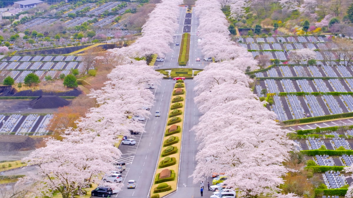 まず訪問するのは「日本さくら名所100選」にも選ばれた敷地面積213万平方メートルの広大な公園墓地です。ヤマザクラやソメイヨシノなど約3,500本の桜が植えられた参道の桜並木は圧巻ですよ~!
